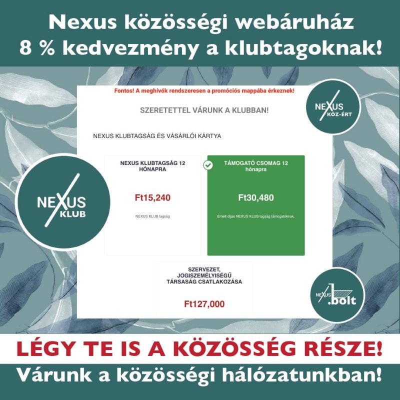 KÖZ-ÉRT kapcsolat: A webáruház a Nexus KÖZ-ÉRT projekt egyik kiemelt eleme, ahol a Klubtagok kedvezményes vásárlásokat végezhetnek.